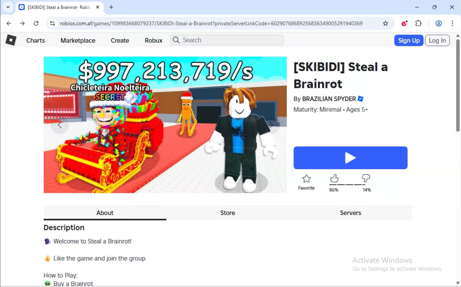 La pagina di destinazione presentava un gioco Roblox fasullo intitolato “SKIBIDI Steal a Brainrot”, completo di immagini realistiche, valutazioni e un pulsante “Gioca” ben visibile. Il contenuto imita da vicino uno dei giochi più popolari attualmente disponibili sulla piattaforma Roblox ed è stato chiaramente progettato per attirare i bambini, target della piattaforma.